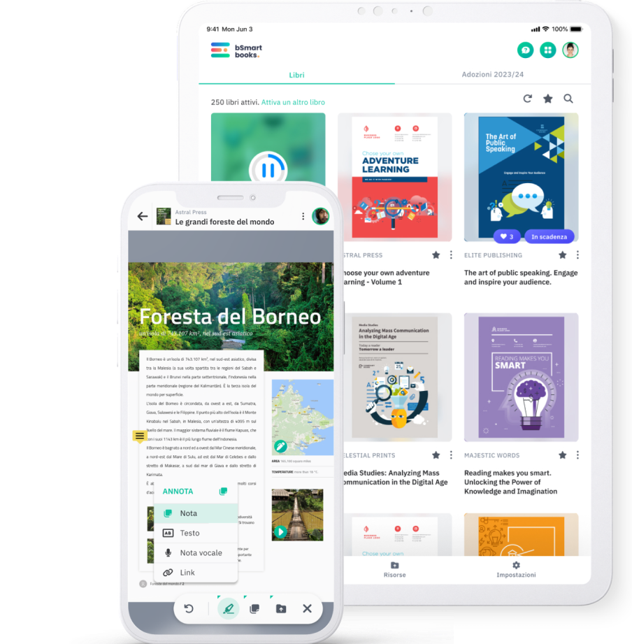 bSmart is the first educational hub in Italy providing schools, teachers, students and their families with services and content. Thanks to bSmart you can have all you need to turn learning and teaching into an effective, simple, innovative and friendly experience.bSmart includes different environments, all integrated with each other: